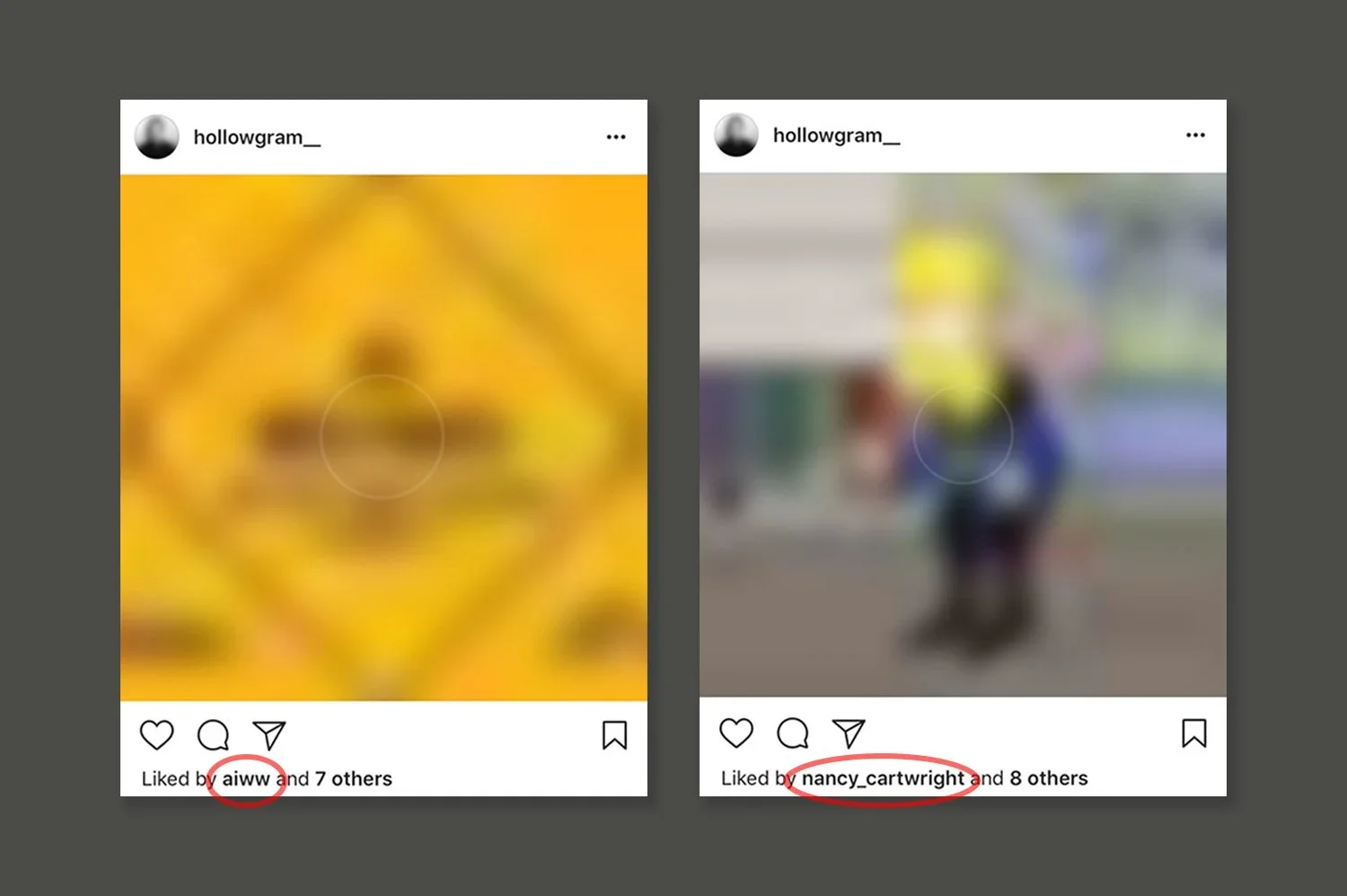 The project peaked when Ai Weiwei and Nancy Cartwright “liked” Hollowgram’d versions of their posts.
